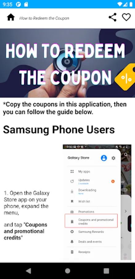 How to redeem the coupons that we have embedded in this application.