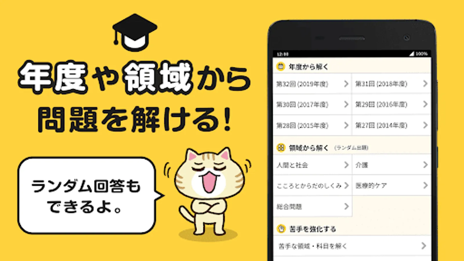 Ume, Konbu, and Mikan, the original characters of "Minna no Nursing Care", appear on the top screen after logging in and on the screen after solving all the problems! It heals the hearts of everyone who is tired from studying.