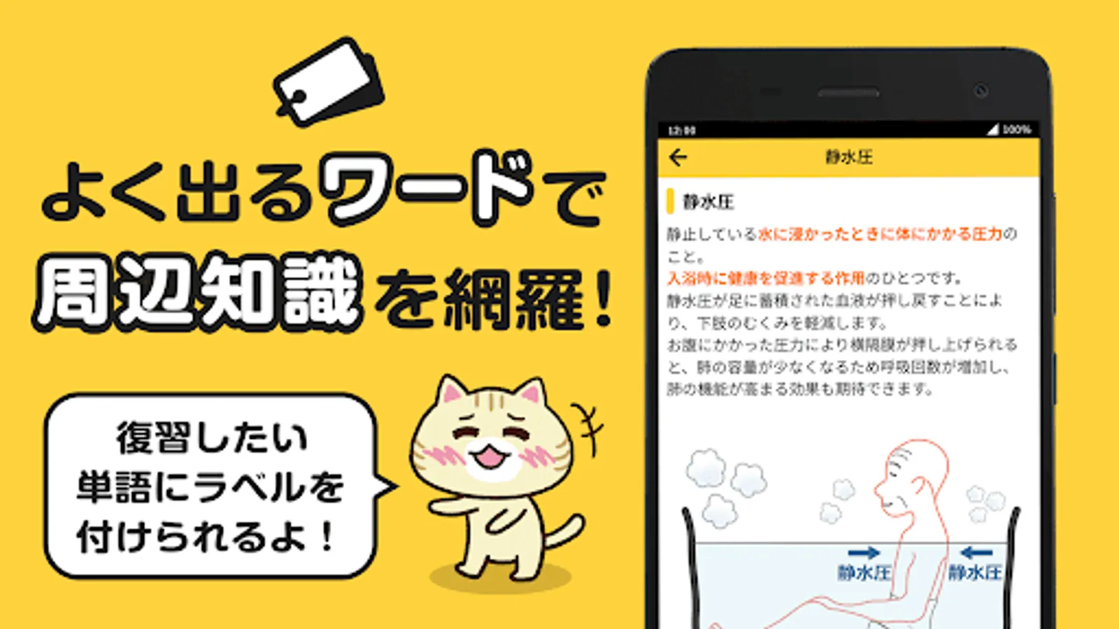 "Frequently-appearing words" explains about 340 keywords, such as words and systems that appeared in past questions. This function is useful for those who want to cover the surrounding knowledge and those who are worried about understanding the problem.