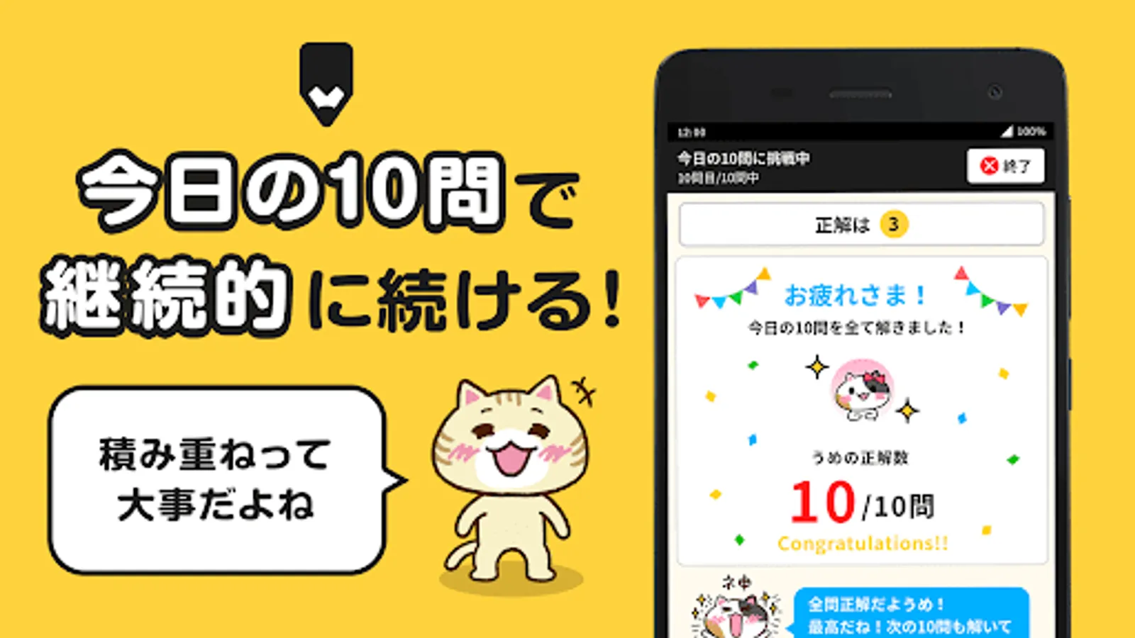 ① First, solve the problems little by little with "Today's 10 questions",