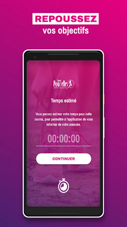 The Courir POUR ELLES application is a connected experience on routes with or without a track, which caters to all those who want to decide the day and time of their participation. This application finally responds to the will of gentlemen, who can now mobilize FOR THEM!