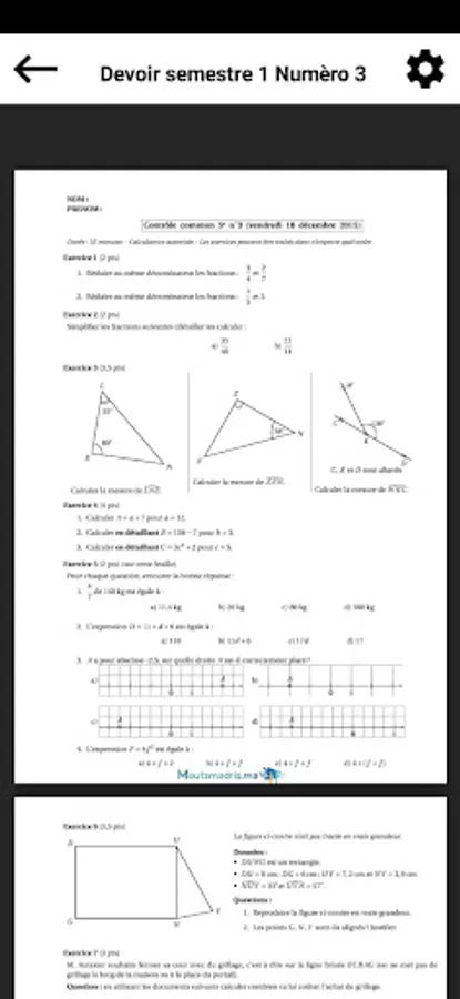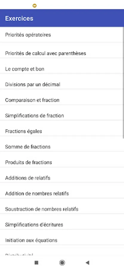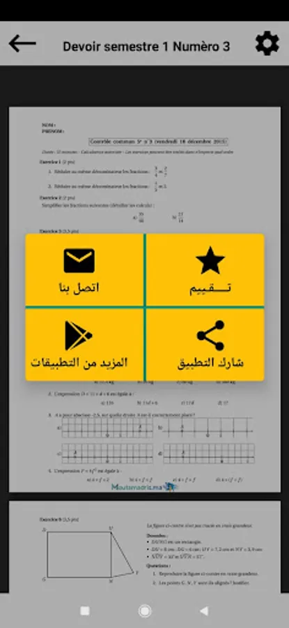 : قائمة الدروس و التمارين و الفروض المتوفرة في التطبيق