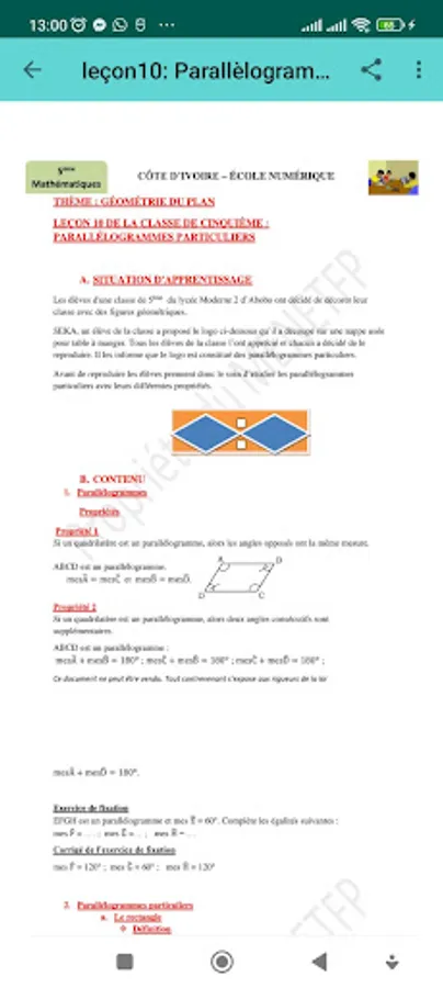 With Cours de 5eme Collège, find all your lessons and corrected exercises directly in your pocket: