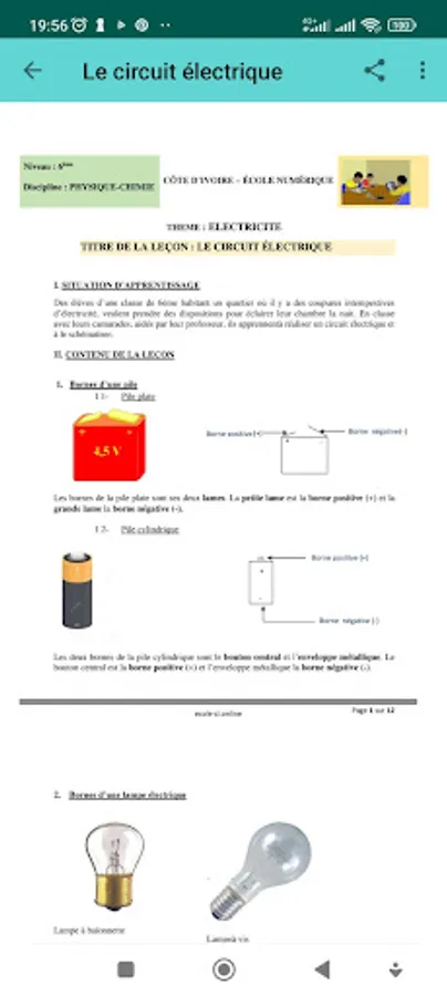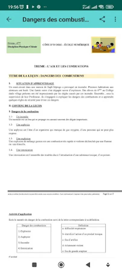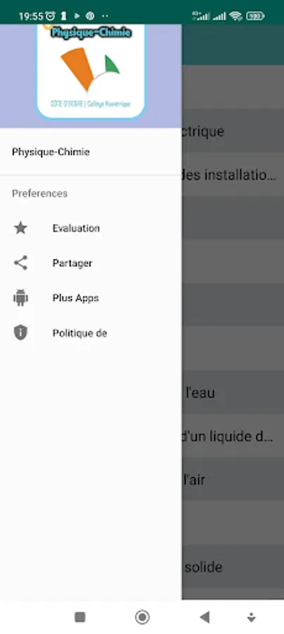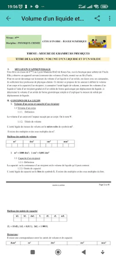 This application is designated; for Ivorian students, it contains Physics-Chemistry lessons for 6th graders, exercises and corrected homework in a single page.