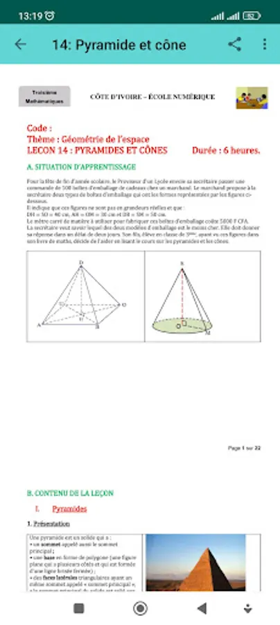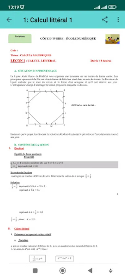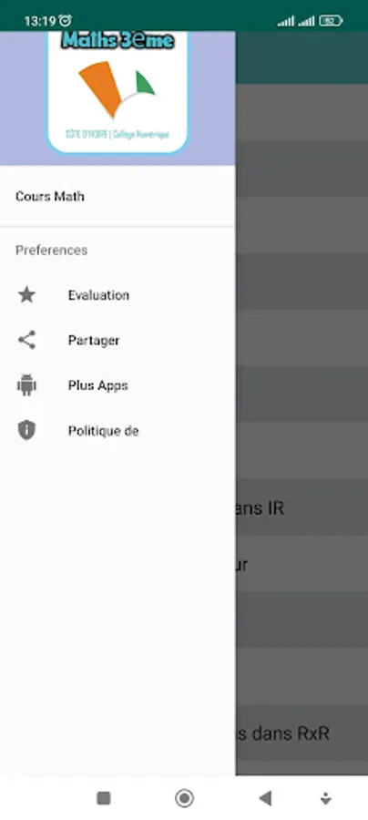 This application is designated; for Ivorian students, it contains Mathematics lessons for third graders, exercises and corrected assignments in a single page.