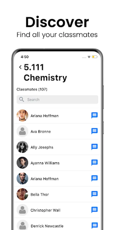 NEVER GIVE OUT YOUR NUMBER AGAIN: Unlike GroupMe or Messenger, CourseFi allows you simply search for and message all students in your classes or campus. That way, you never have to add people to your personal social media accounts or provide your phone number for group projects.