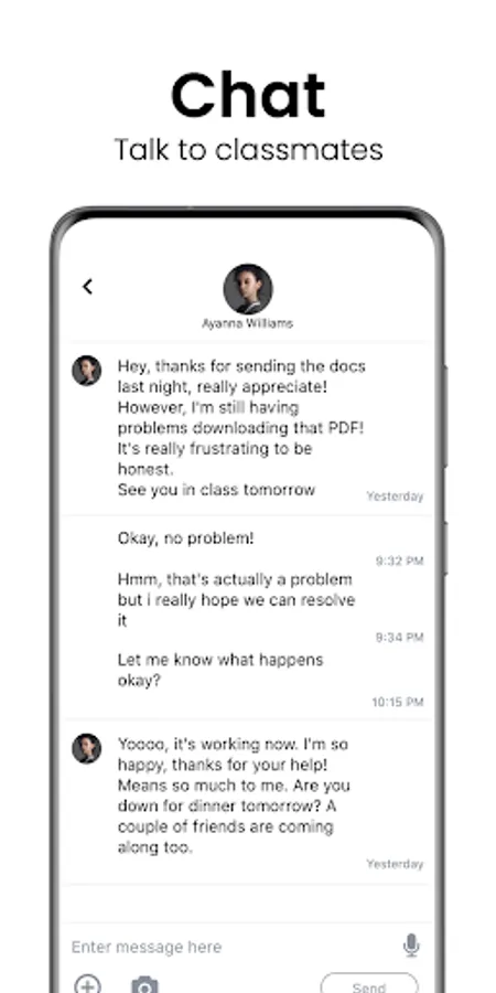 CourseFi is a FREE messaging app available for college students. CourseFi uses your college’s course information to create group chats for EACH semester. So, when you sign up, all you need to do is find the classes you’re in. On CourseFi, you can send and receive messages, pictures, voice messages and files.