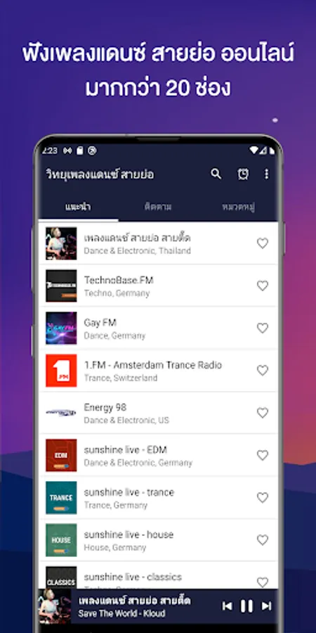 Fun dance music, dance music, short lines, listen to the latest music We arrange songs that are dripping, hit the charts, for lovers, people who miss and people who like the beat of upbeat dance music. listened to the fullest Let's make it the end This app you will listen Dance music online 24 hours free of charge to download the app. You just download this app. no matter what you do No matter where you are, festivals, you can still listen to great dance music. anytime, anywhere Whether it's a song, dance music, Sai Yue, dance music, Mo Lam and Remix songs, you can listen to it. just download this app You will be listening to great dance music. Unlimited free And you can also share the songs you like with your friends. The app is easy to access. Don't want to play. Beautiful music. Good beats are waiting for you to load. Let's download and listen.