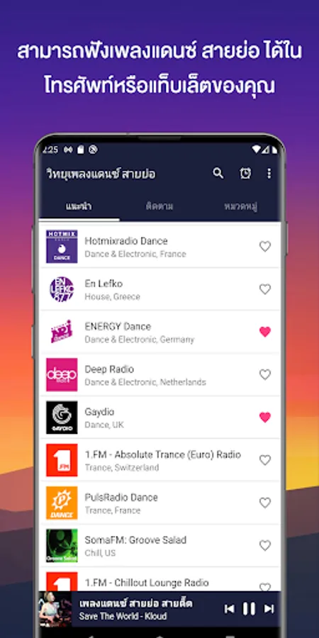 * Enjoy listening to your selected station. You can listen to great dance music online for 24 hours.