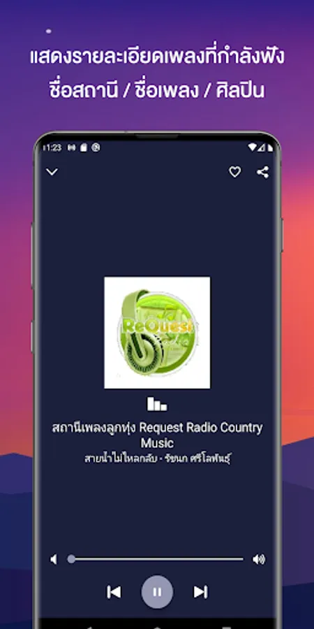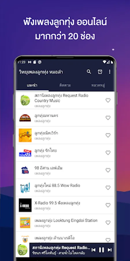 With this app, you can conveniently use it by just playing music in the app you like. When you listen to country music, you will enjoy the taste that reflects the way of life in the northeast. Ideal society and Thai culture With melodies, lyrics, accents, and styles of singing, with traditional patterns With unique characteristics that give the atmosphere Countryiness Makes you get a different experience from other music Or will be frantically rhythmic until having to rise up to sway along People listen to rock music, indie music, international music, music for life. Can listen to music with country music free Just download this app. You will get to listen to unlimited country music. And can also share the music you like to your friends The app is easy to access, play, do not want country music, because the rhythm is waiting for you to download. Let's download and listen.