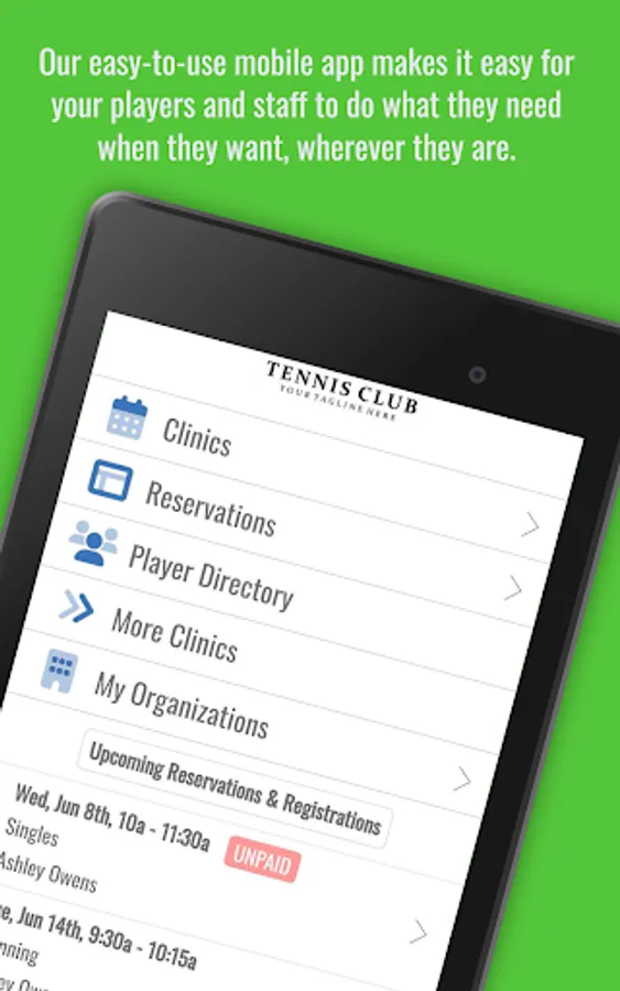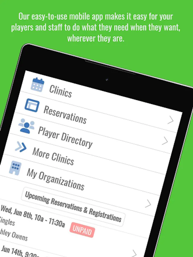 CourtReserve is a scheduling tool built to help coaches, players, and staff keep track of daily schedules for lessons and clinics. Our custom views will help you organize your team's schedule so that you can make the most of your time on the court!