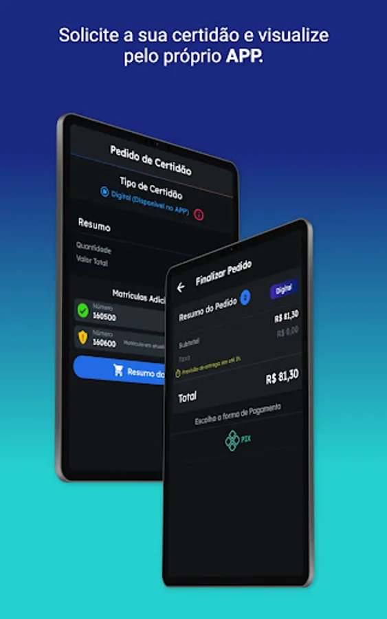 Request a digital registration certificate via the APP within 60s and pay with PIX;