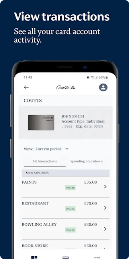 Coutts ClearSpend is available to eligible Coutts Business and Commercial Card account customers with compatible Android devices and a UK or international mobile number in specific countries. Over 18s only, other terms and conditions apply.
