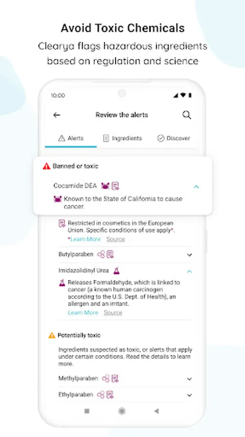 3. Automatic alerts on potential health risks hidden in ingredients lists for beauty, personal care, baby care, cleaning products, and more.
