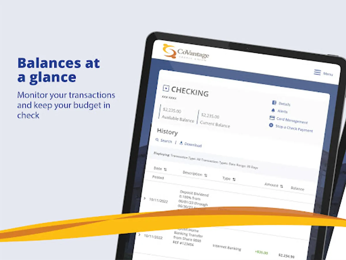 MyCoVantage mobile banking puts your CoVantage Credit Union account information at your fingertips!