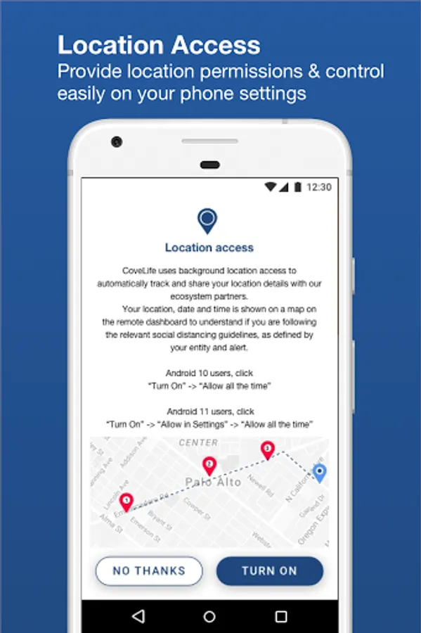 3. Based on the questionnaire filled, your location may be accessed in the background and shared with your organisation via the remote monitoring dashboard.