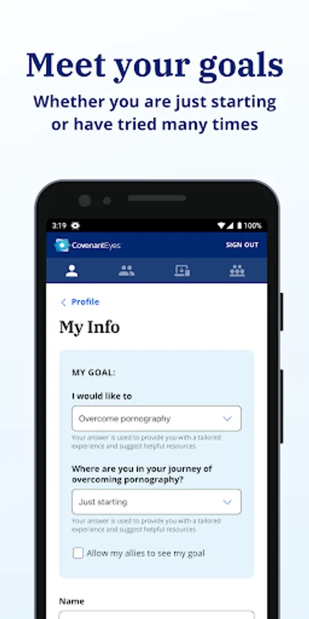 Join over 1.5 million people who've used Covenant Eyes to live porn free. The Covenant Eyes app is a key tool in your porn recovery journey. Activate device-wide accountability to help track your progress and achieve Victory in your porn recovery goals.