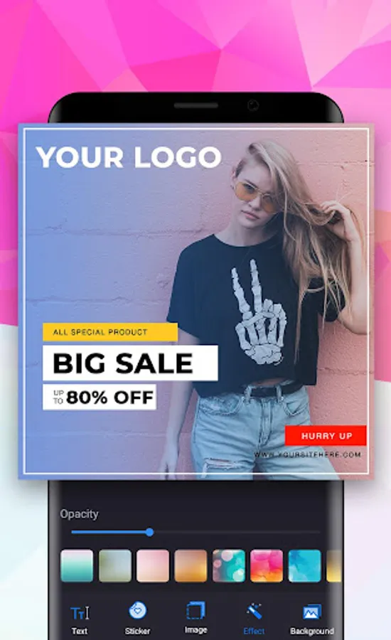 Plenty of cover maker templates, creative stickers, text arts, various shapes and graphic design. use those templates to create an amazing cover and post design with cover maker app.