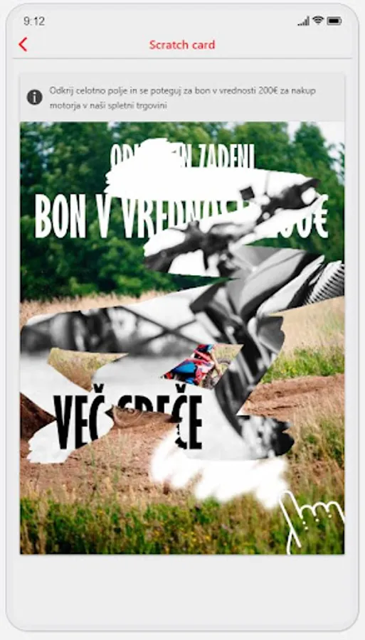 The app offers users a scratch card, a loyalty programme, my account and a presentation of Luka Decko Moto 60 - LD 60.