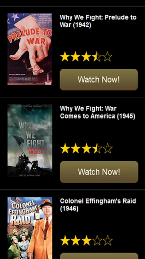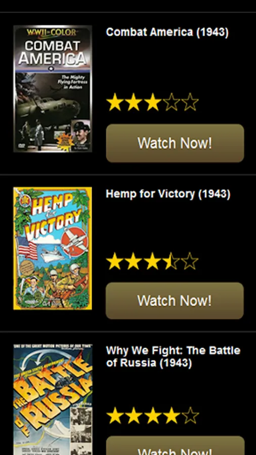 It is not necessary for your device to support Adobe Flash Player to use Warflix! Free war movies are streamed to you via HTML5 technology.