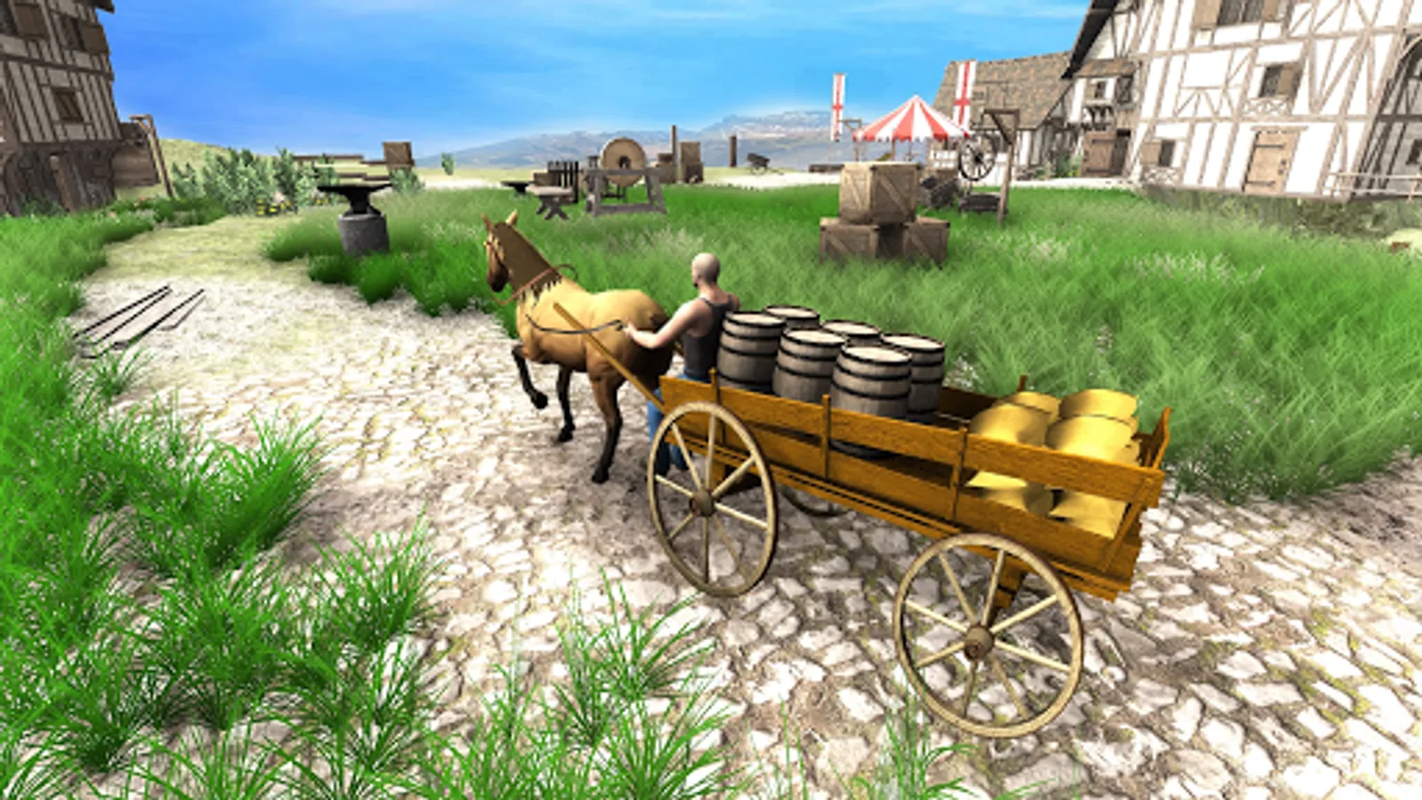 Transport goods, farm animals and hay stuff around the mountain area on your offroad horse carriage cargo. Time to become a horse carriage driver and start your career as cargo delivery man and drive your horse cart like a pro cargo transport driver. Become an offroad horse taxi driver and ride horse taxi through beautiful old towns. Transport cargo boxes, egg crates or vegetables & fruits in the city to earn rewards and with that money you can upgrade horse stables and unlock new horse carts and beautiful carriages. This horse carriage simulator will give you the thrill of driving a real horse cart simulator which is best in horse transport games.