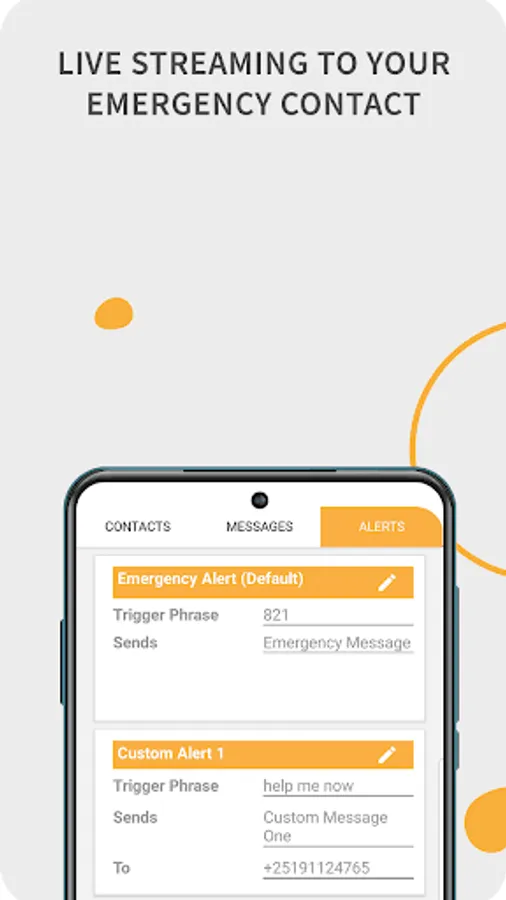 • Instant live streaming feature to directly connect to your chosen emergency contacts in real time.