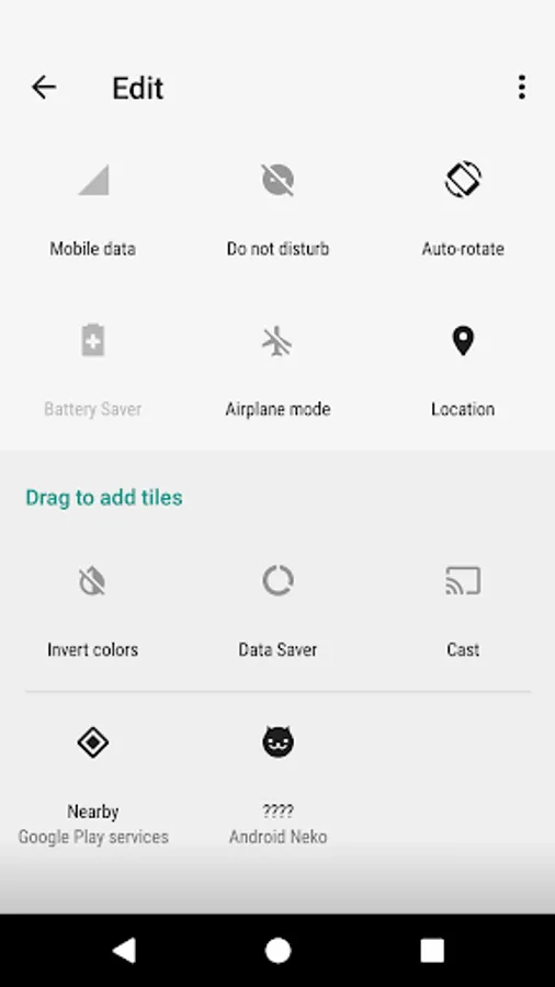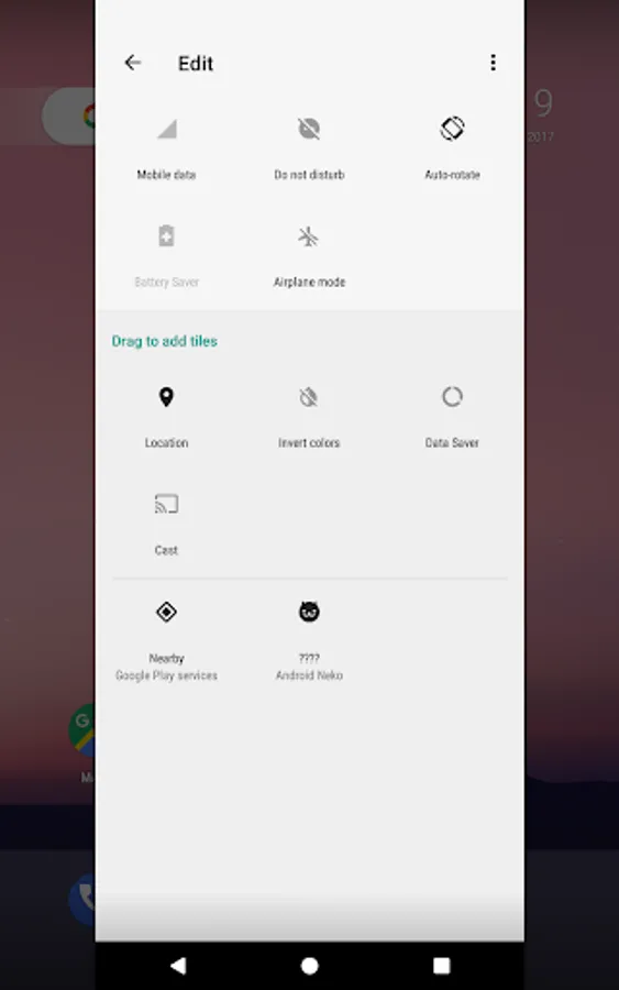 In case you're unfamiliar with this game, please see https://www.howtogeek.com/269207/how-to-enable-android-nougats-cat-collecting-easter-egg/ and skip to the step that says "Give the notification bar a couple more tugs, to expose the Quick Settings menu. Then tap 'Edit.'"