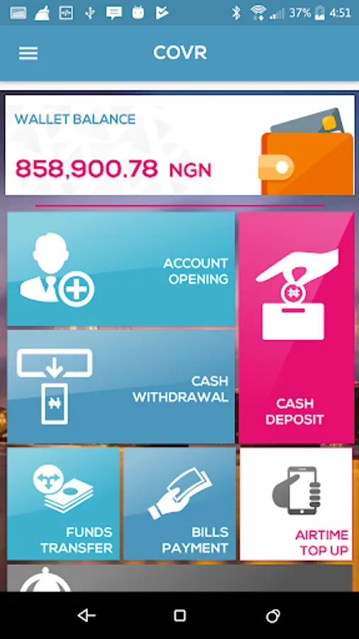 The COVR Heritage bank agency banking application allows authorized agents carry out various financial transactions including account opening, deposits, withdrawals, fund transfers, bill payments, airtime top-up and other services for the bank's customers.