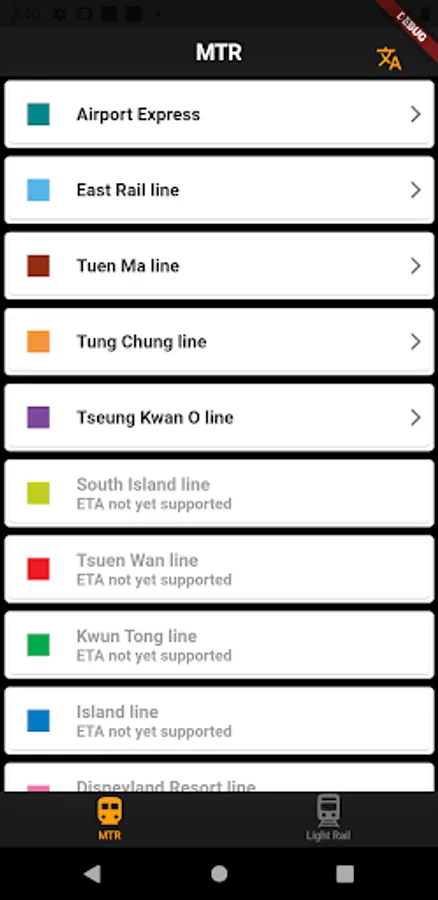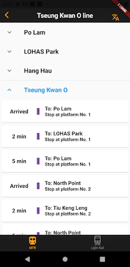 RailTimer providing the MTR and Light Rail Real-time train information.