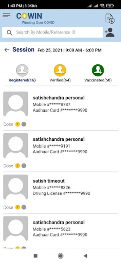 This Mobile Application is currently meant for CoWIN Facility level users to perform following tasks as Vaccinator , Supervisors and Surveyors.