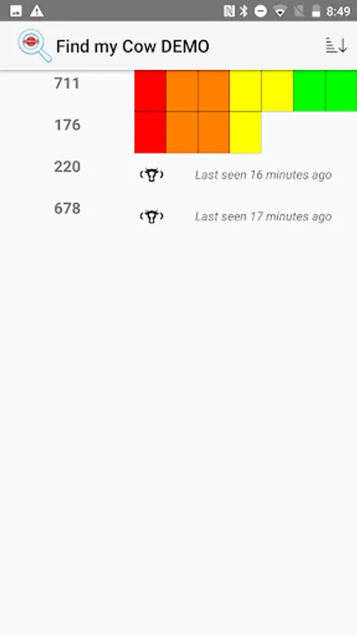Note that this app adds no value on a standard phone, real searching is only possible with the Find my Cow device.