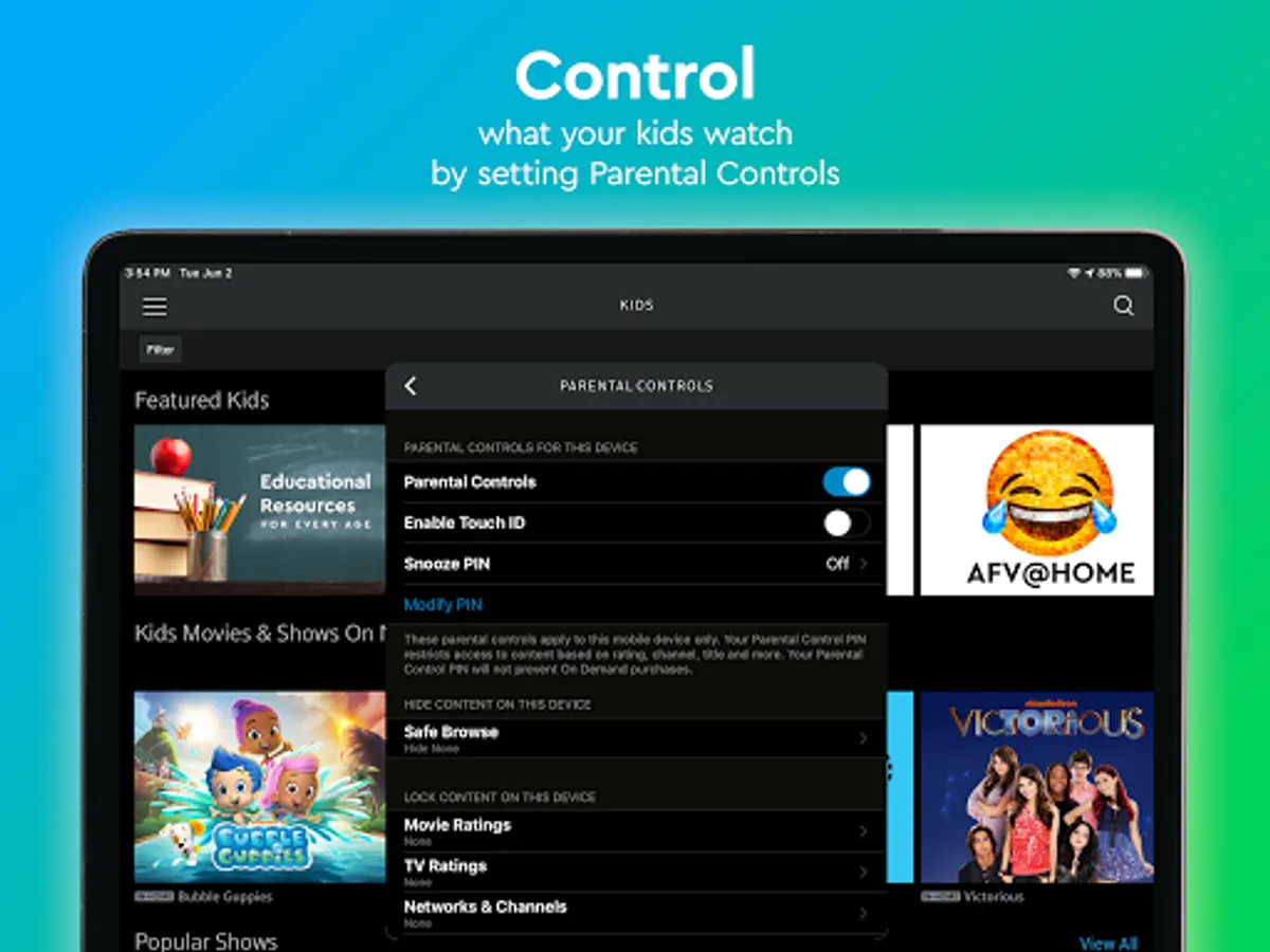 Watch live TV and On Demand shows and movies on any device at home or on the go.