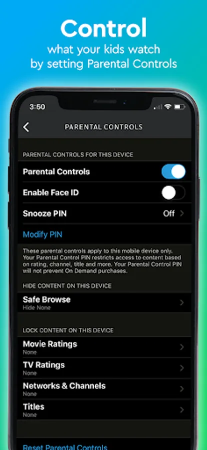 • Use ‘Parental Control’ in Settings to manage what your children can watch on mobile devices.