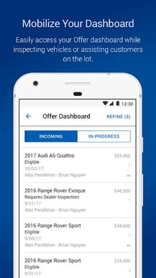 This app allows Participating Dealers to generate new and review existing Kelley Blue Book(SM) Instant Cash Offers. Consumers interested in buying or selling a car should use the Autotrader “Find New & Used Cars For Sale” app.