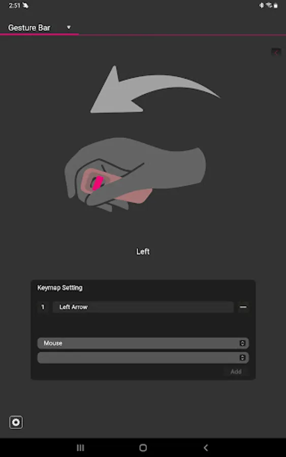 Gesture Bar Mode : Detects 4 types of gestures, and when the gesture detection is on, the LED light in the center remains on.