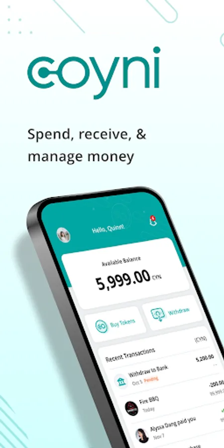 coyni allows users to take control of their funds with an automated ledger that updates in real time. Merchants can receive coyni tokens instantly. Use coyni to know where your finances stand, both for your business or personal spending, 24/7/365. *