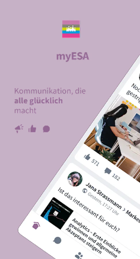 The myESA app is the mobile digital home for all employees of the Evangelical Foundation Alsterdorf. The app offers news from the foundation, simple real-time communication with colleagues, effective collaboration on projects and topics, a clear contact list and much more. Cross-foundation, from any place and at any time.
