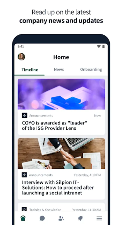 - Information: Receive personalized news about your company, site and department – quickly and conveniently.