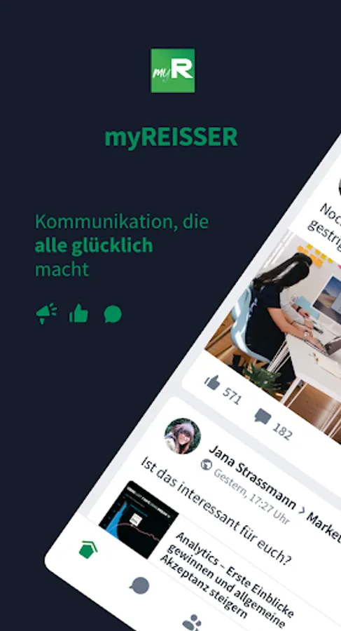 The new, user-friendly intranet app myREISSER creates new opportunities in corporate communication for employees. Based on the intranet of REISSER AG, the myREISSER app offers you access to company news, departmental information and other intranet functions - anywhere and anytime.
