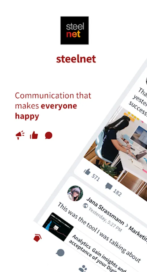 Steelnet is the user-friendly intranet app for employees of Swiss Steel Group. Based on steelnet, the app offers news from your company and facilitates easy real-time communication between colleagues 24/7 worldwide and many other features.