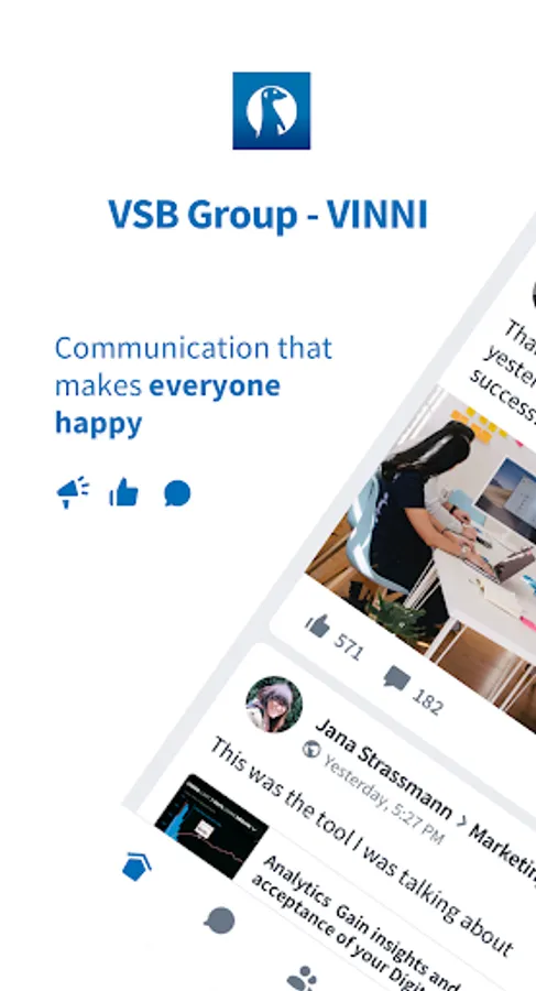 The native app VINNI is the mobile digital home for all employees of the VSB Group. The app offers you VSB news, simple real-time communication between you and your colleagues, a clear contact list and many other functions - always stay up to date from any place and at any time.