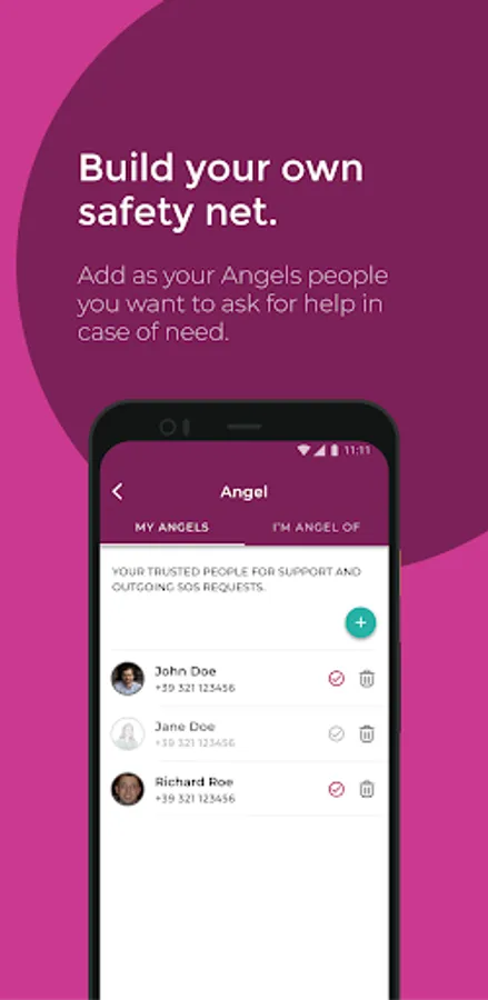 - Angels: this is the a personal safety net, which users themself build upon invitation. Angels are our most trusted people.
