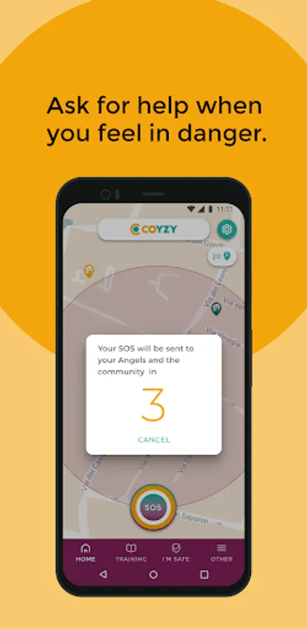 - I’m Safe: by tapping the “I’m safe” button, users can notify their personal safety net (Angels) that they safely reached their destination.