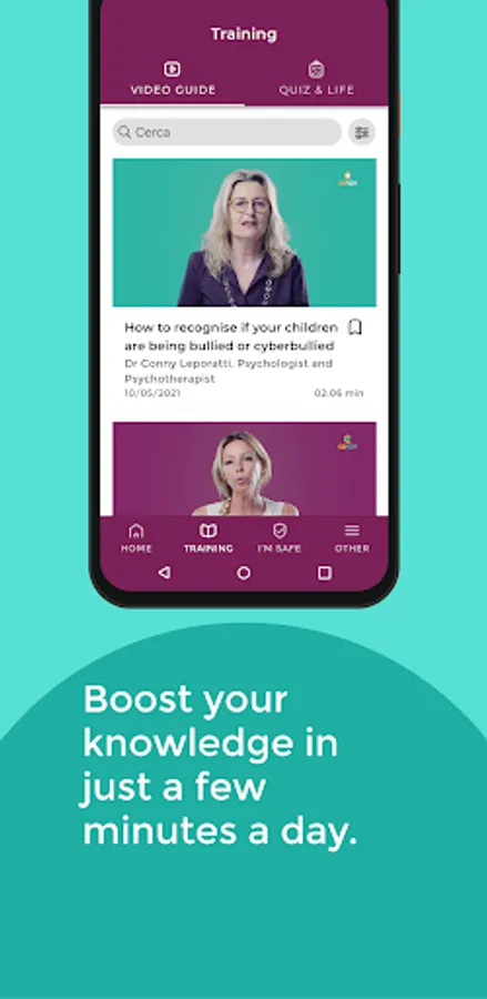 Training: within the “training” section, users can find training and informative content. All this is divided by topics so that it can be enjoyed directly from a smartphone.