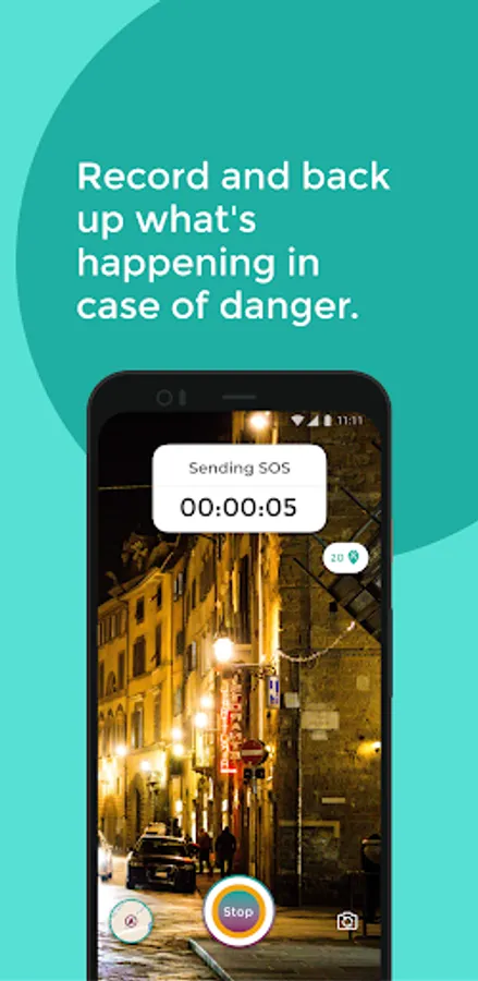 - Audio/Video recording: when SOS alarm is active, the user’s smartphone will automatically record audio and video of what is happening. Recorded content is stored in the smartphone photo/video gallery for potential future use as evidence in any proceedings.
