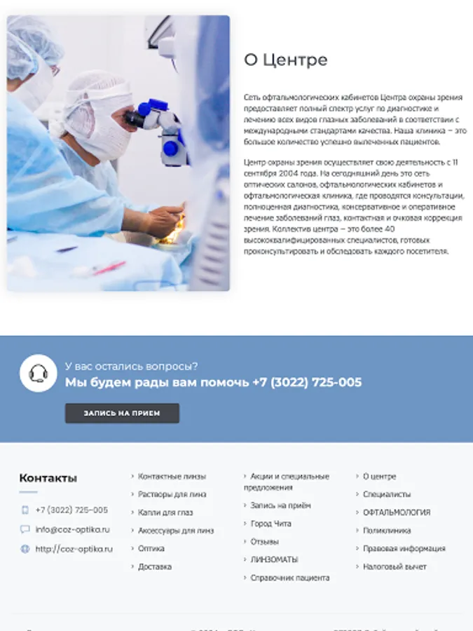 The Eye Care Center has been operating since September 11, 2004 - more than 16 years of successful work in the field of ophthalmology.