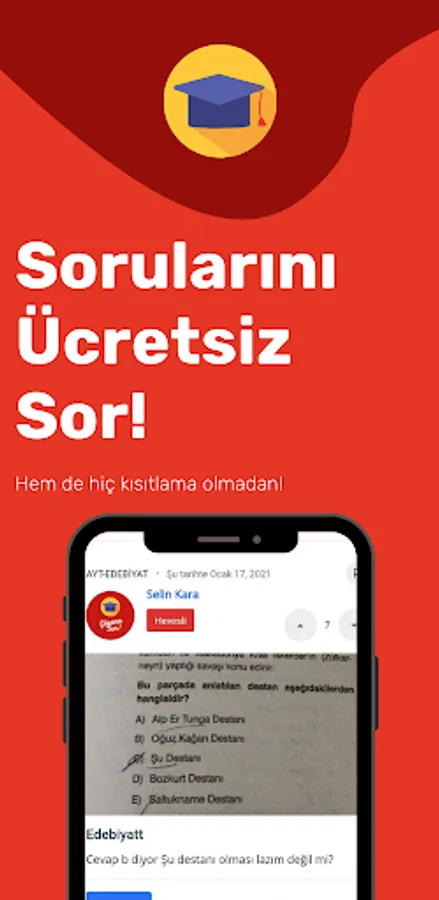 With Ask Solver, you can easily ask YKS 2021, LGS 2021 and KPSS 2021 questions, get colleagues, create surveys and get free consultancy. It's completely free!