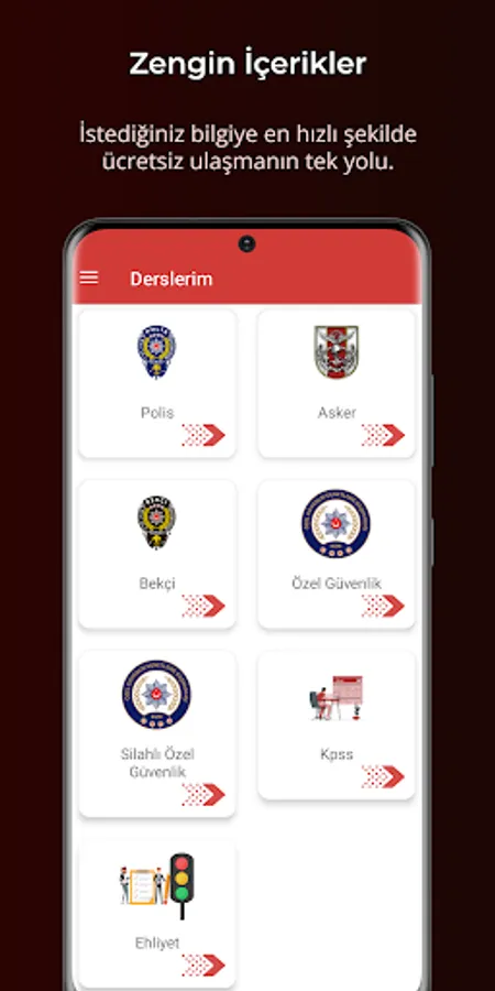 It contains the most up-to-date Police, Soldier, Guard, Private Security, Armed Private Security, Kpss License, Kpss Associate Degree, Kpss Secondary Education and Driver's License exam questions.