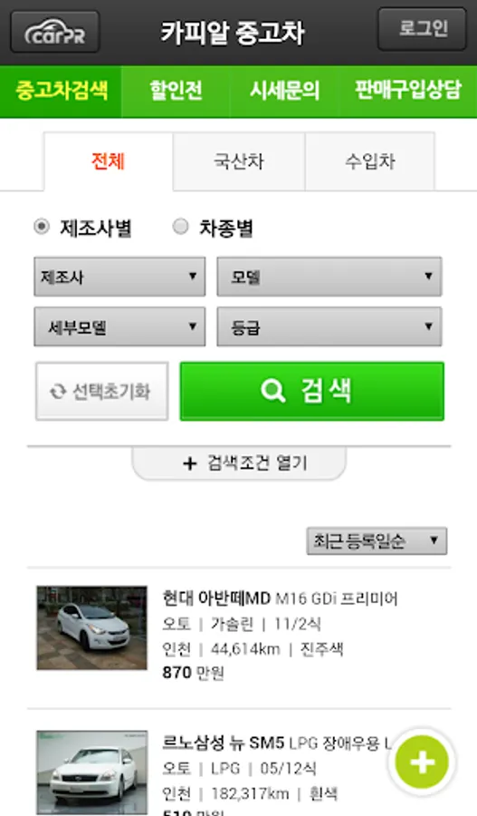 - 제조사, 차종별로 쉽고 간편하게 전국 실시간 중고차 매물검색