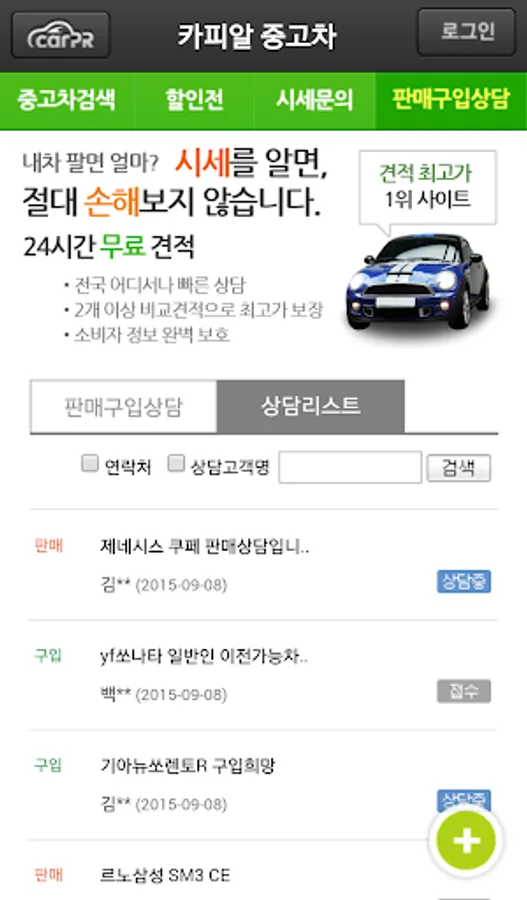 - 매물관리, 상담관리, 희망차량 찜하기 기능